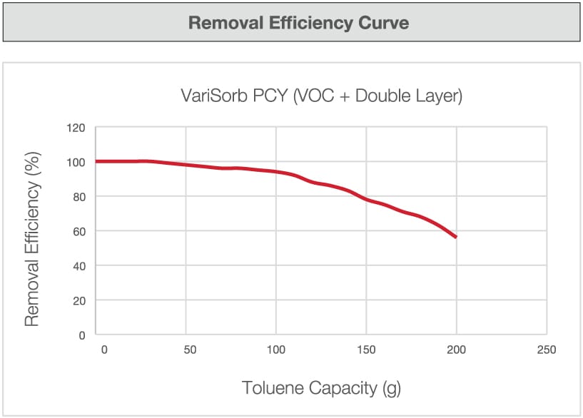 The VariSorb PCY filter features a pleated media comprised of highly active nano carbon embedded to the polymer composite matrix layers. This structure provides a much higher effective area compared to granular bed chemical filters resulting in an excellent rapid adsorption of contaminants at lowest possible pressure drop and maximum energy savings. Particle shedding is also eliminated by the advanced polymer matrix layer selection.
